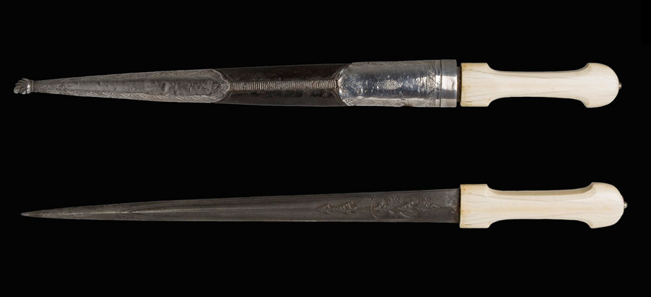 Steel, ivory, wood, leather, silver