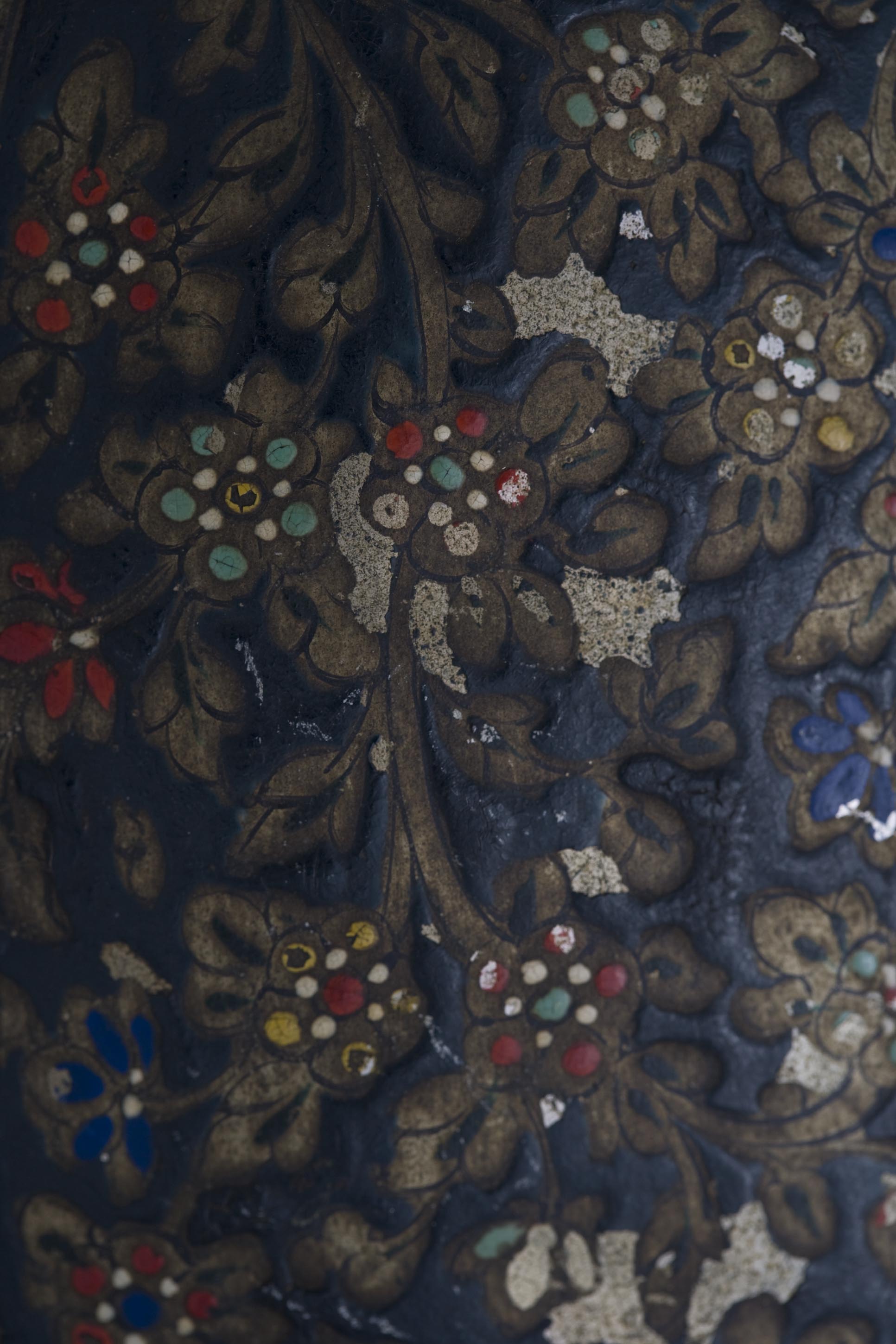The interior band displays a continuous pattern in a vegetal and floral theme.