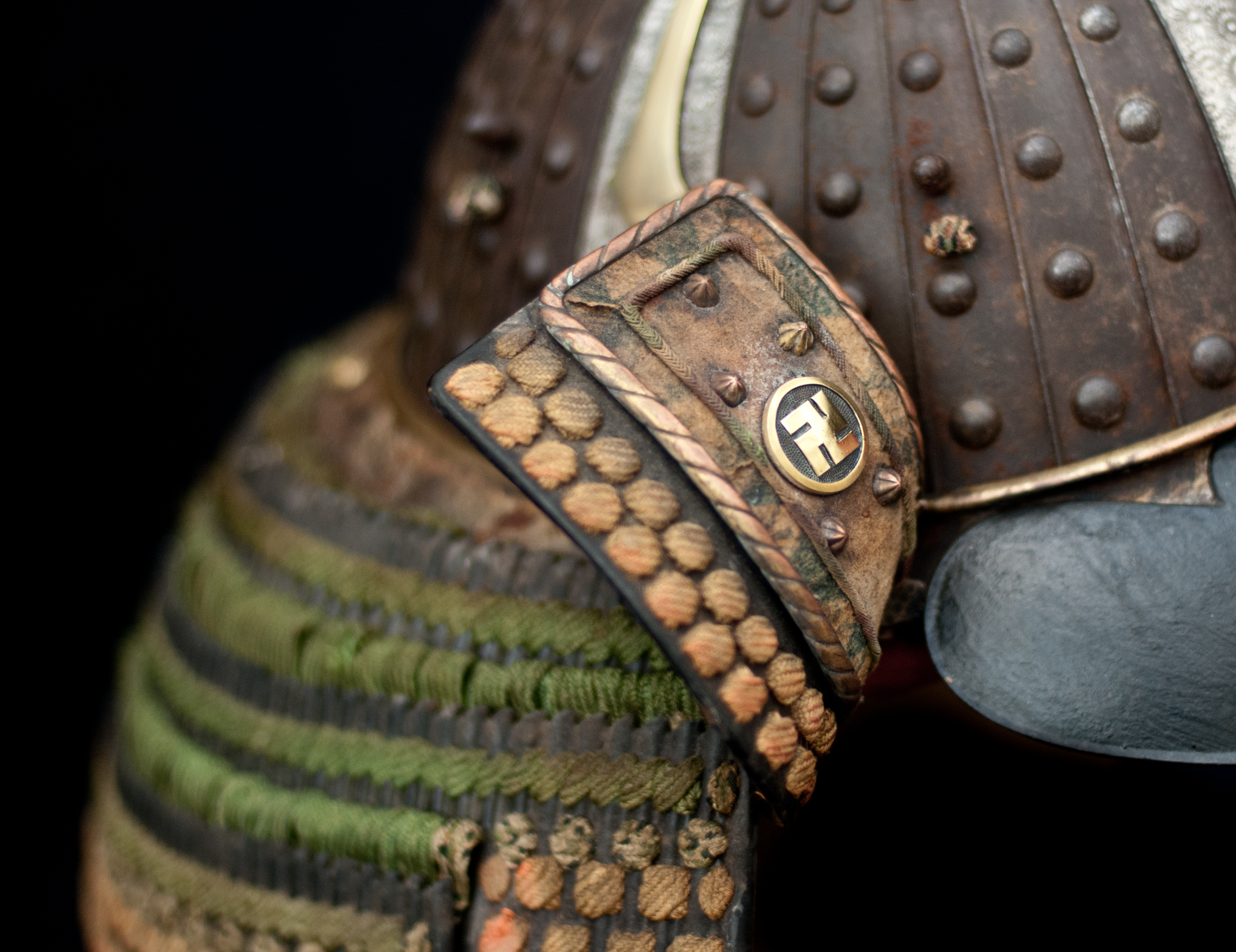 Composto de vinte seis placas, quatro das quais cobertas com placa de prata gravada com um padrão de crisantemos, e presas por ornamentos de cobre dourado. As restantes placas são presas por rebites shiten-no-byo e hibiki-no-ana. Apresenta um tehen kanamono de cobre dourado tripartido no topo. A bacia contém um shikoro de três lâminas em ferro lacado com fukigaeshi acentuado em ouro, centrado por um mon de cobre dourado com um caractere manji.