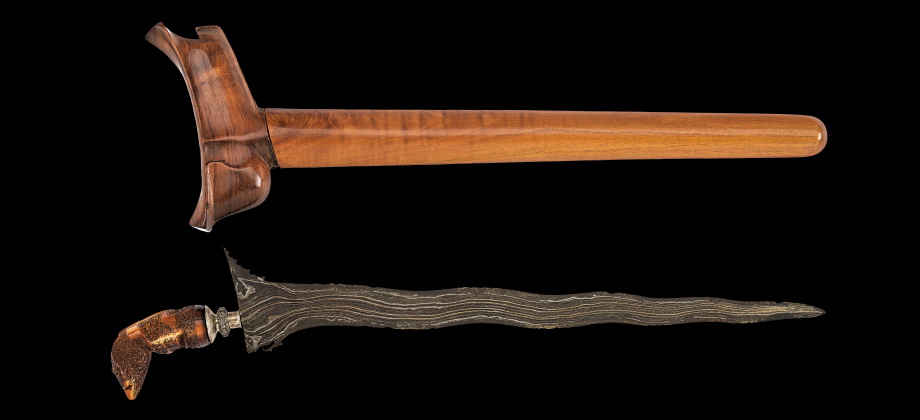 Aço, madeira preciosa, marfim de hipopótamo, prata