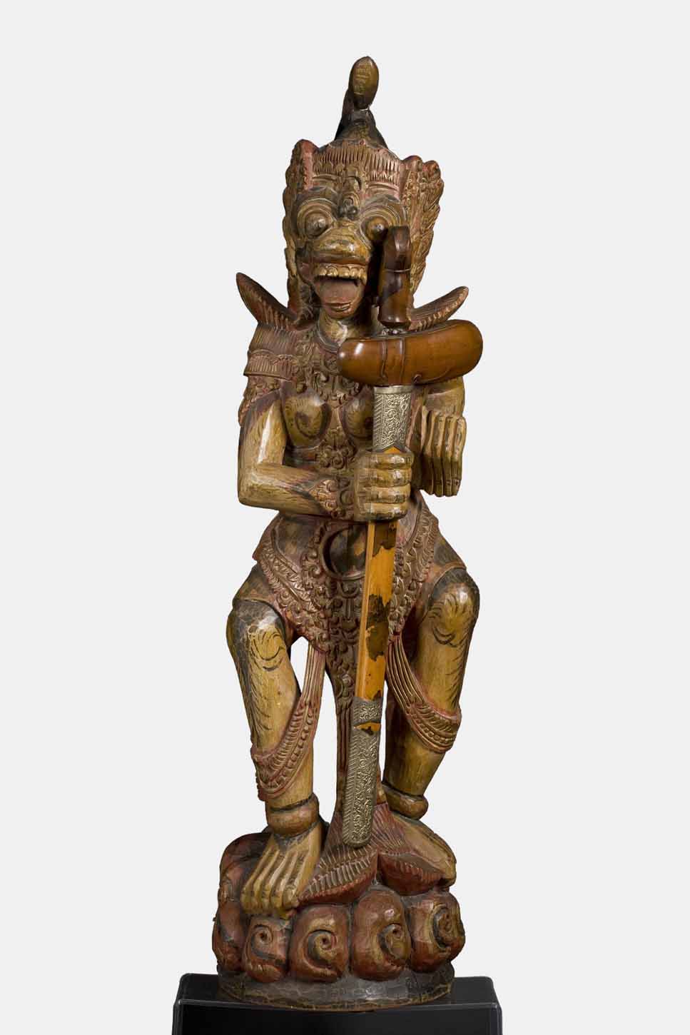 Representing the monkey general Hanuman or Hanumat this stand is sculpted in a single piece of polychromed wood