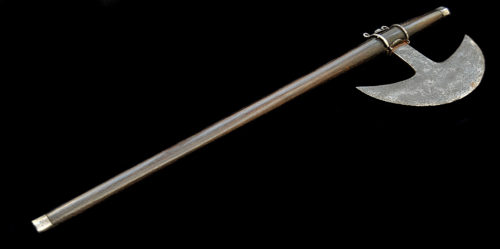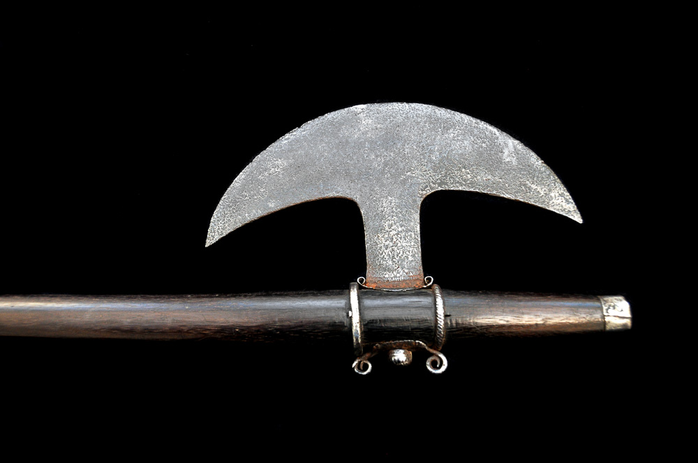 These tribes usually employed more rudimentary and rudely made weapons, though never neglecting their functional aspect. This axe is a good example of this type of weapon.