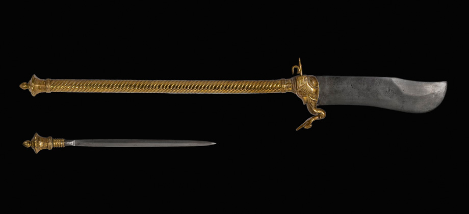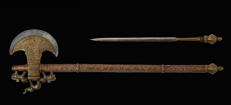 Full Length: 56 cm; Axe’s Blade Length: 13 cm; Dagger’s Blade Length: 26 cm